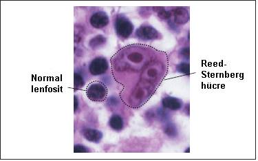 Hodgkin lenfoma, bir lenfosit (genellikle bir B hücresi) anormal hale geldiğinde başlar. Bu anormal hücreye Reed-Sternberg hücresi adı verilir (Aşağıdaki resme bakınız.)